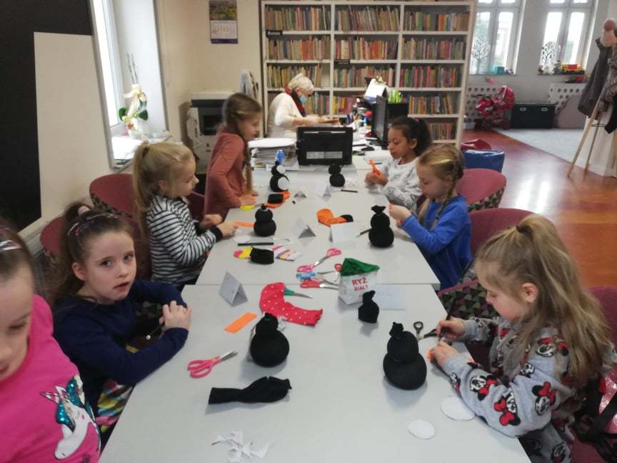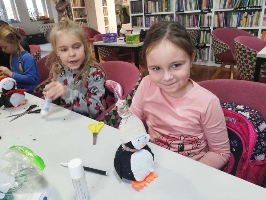 Ferie w Miejskiej Bibliotece Publicznej w Śmiglu - 1 dzień 24 stycznia 2022 Podczas dzisiejszych zajęć kreatywnych dzieci tworzyły pingwinki ze skarpetek, ryżu i filcu. Później kolorowały kolorowankę według numerów