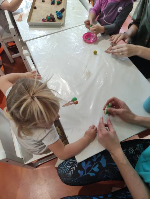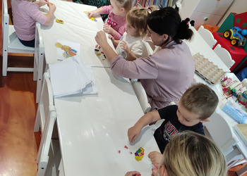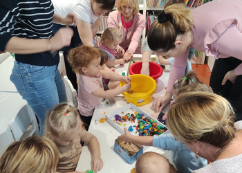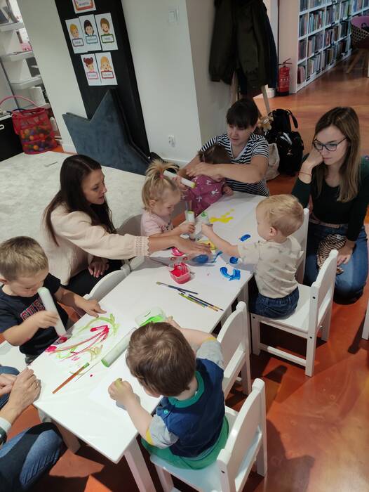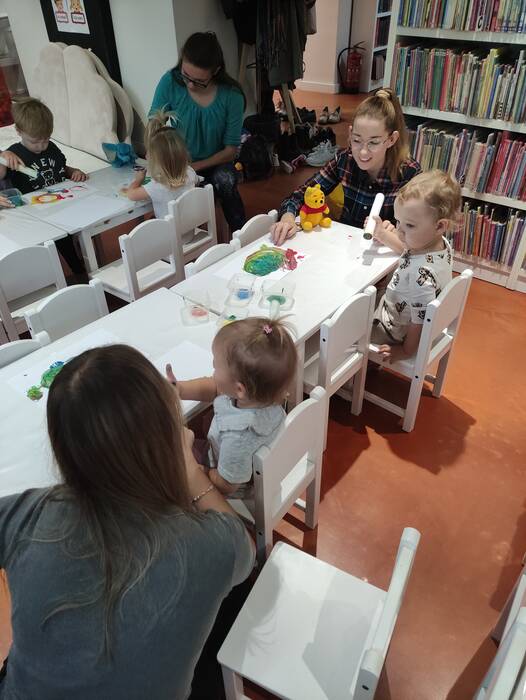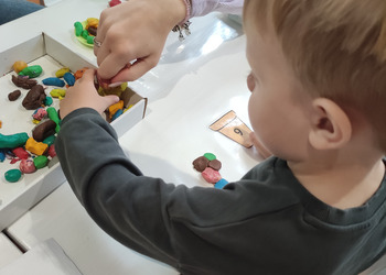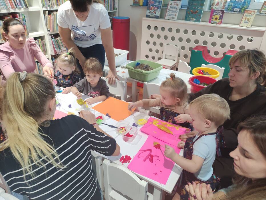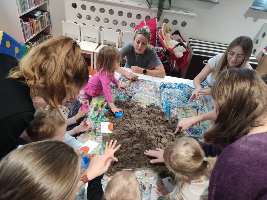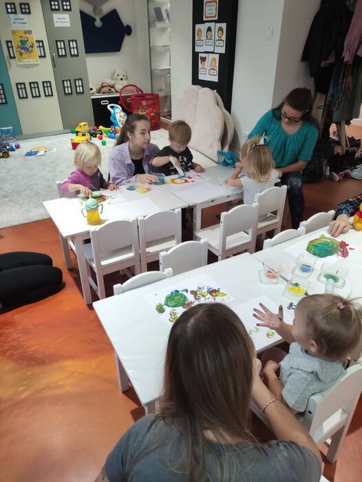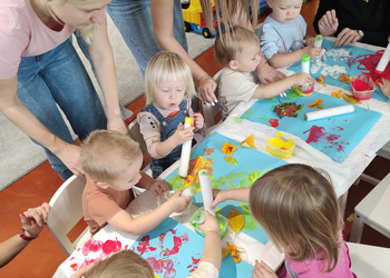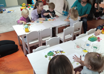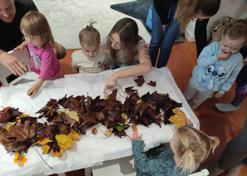 Jesiennie w śmigielskim Klubie Malucha. Dzieci podczas zajęć poznawały dary jesieni, które zostały wykorzystane do zabaw sensorycznych. Nie mogło zabraknąć również malowania, lepienia z plasteliny oraz wspólnego śpiewania