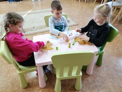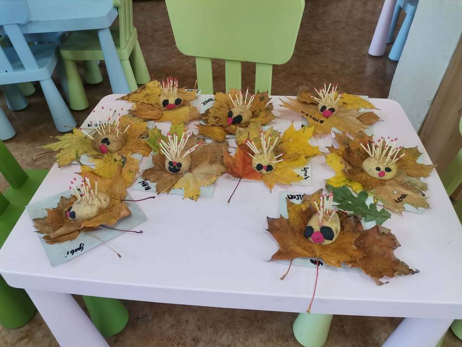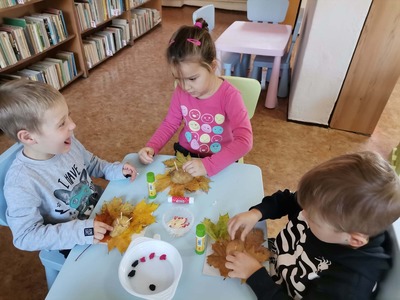 Dzisiaj w bibliotece gościły przedszkolaki - grupa MISIE. Wysłuchały bajeczki o Jeżyku śpioszku , wykonały z liści domki dla jeżyków. Bawiły się również w jesienne zabawy zmieniając się w listki, jeżyki oraz grzybki.