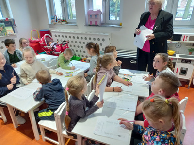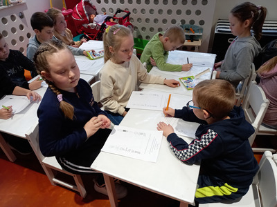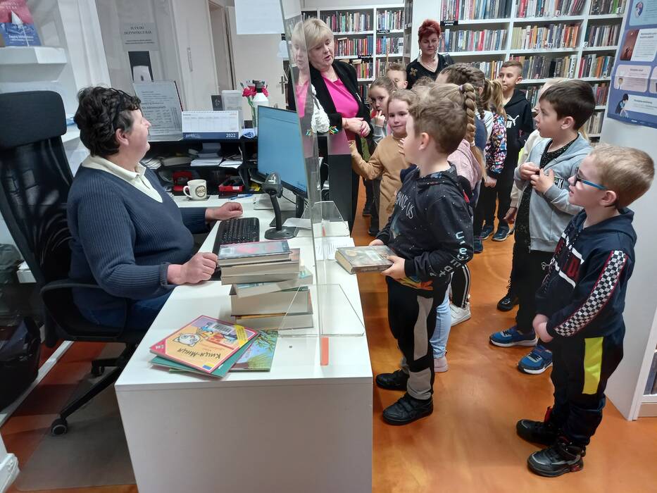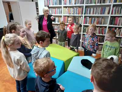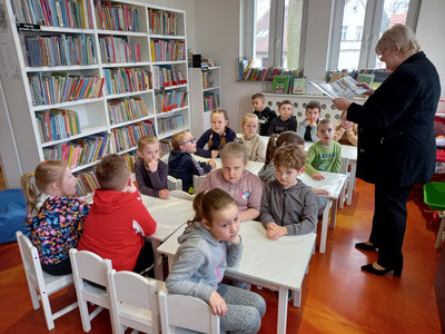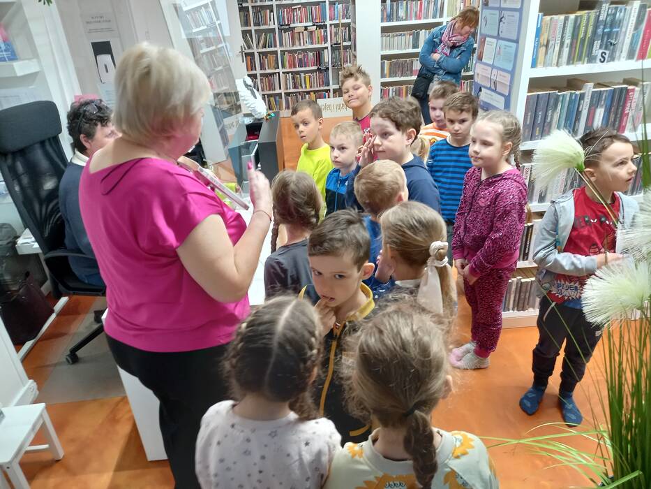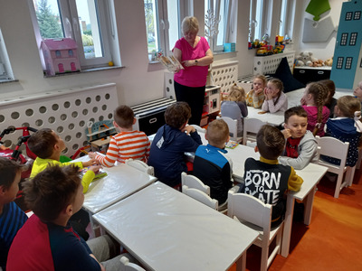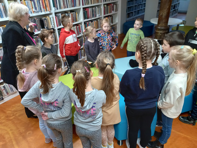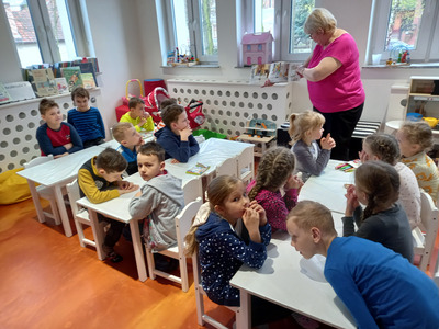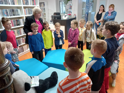 Dzieci z przedszkola Malowane Misie odwiedziły dzisiaj bibliotekę. Turkusowe i Żółte Misie poznały pracę bibliotekarza oraz wzięły udział w zajęciach o życiu dzieci dawniej i dziś.