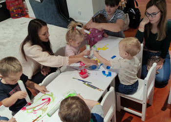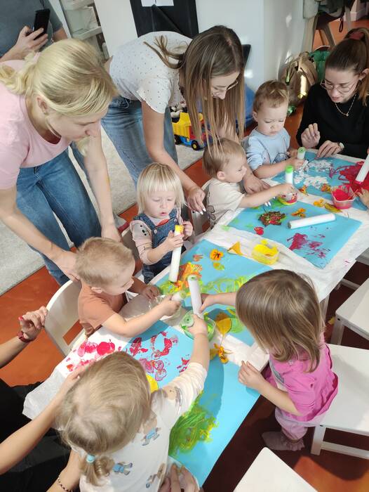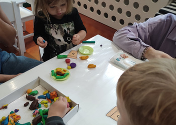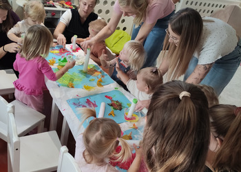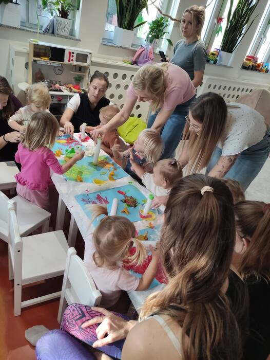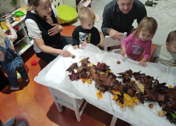 Jesiennie w śmigielskim Klubie Malucha. Dzieci podczas zajęć poznawały dary jesieni, które zostały wykorzystane do zabaw sensorycznych. Nie mogło zabraknąć również malowania, lepienia z plasteliny oraz wspólnego śpiewania